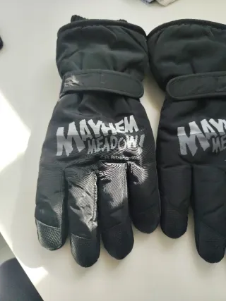 Guantes de esquí negros con diseño. - Marca: Mayhem Meadow - Cierre de velcro en la muñeca - Puntas de los dedos texturizadas