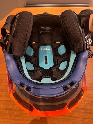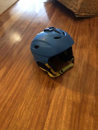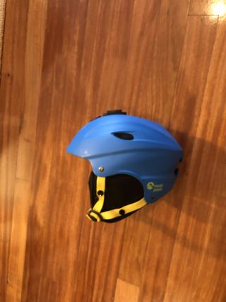 Casco de esquí o snowboard para iniciación. Color azul con detalles en amarillo y negro. Talla S Muy usado pero en buen estado de uso - Diseño para deportes de invierno. - Correa ajustable.