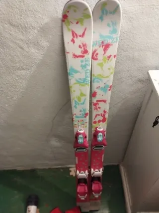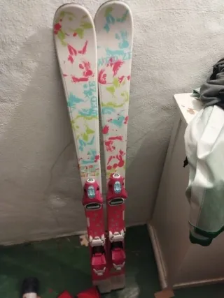Comprados hace 4 años en dechatlon Barakaldo. Lis vendo porque ya le quedan pequeños. También vendo botas del número 38 por 20 euros mas - Diseño con estampado de conejos y salpicaduras de colores. - Fijaciones de esquí en color rosa. - Marca: Wedze.