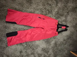 Pantalón de esquí acolchado en color rosa con tirantes negros. Diseñado para ofrecer comodidad y protección en la nieve. - Talla 136-140 cm. - Tirantes ajustables. Se pueden quitar. - Detalle en color negro en la parte inferior de las piernas. Con etiqueta. Sin estrenar.
