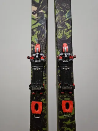 Esquís K2 para esquí fuera de pista. Diseño en color naranja y negro. - Marca K2. - Modelo Apache - Fijaciones incluidas.