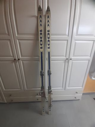 Par de esquís de fondo Tecno Pro. - Diseño clásico en blanco con detalles en rojo. - Fijaciones negras incluidas. - Tengo bastones también de fondo