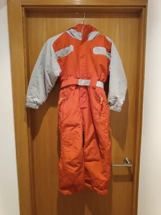 Mono de esquí Quechua en color rojo y gris, talla 6. - Diseño con capucha. - Cinturón ajustable. - Cremallera frontal. - Bolsillos con cremallera.
