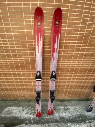 Se venden esquís de la marca Jet, modelo 2. - Color rojo con detalles en negro. - Fijaciones incluidas.