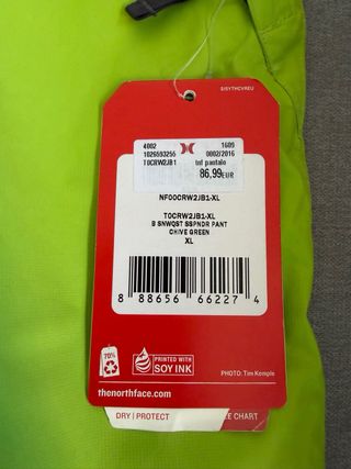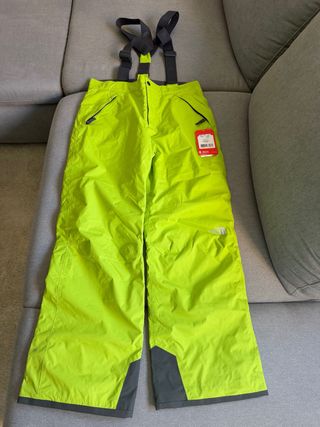 Pantalón de esquí The North Face en color verde lima brillante. Talla XL de niño. Yo uso la 34 de mujer y me queda bien. Lo compré pero no lo he usado nunca. Está con la etiqueta. - Tirantes ajustables ( y también se pueden quitar) - Cremalleras en los bolsillos laterales. - Detalle de logo en la pierna. - Paneles de refuerzo grises en los bajos del pantalón