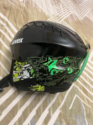 Vendo este casco UVEX original, una de las mejores marcas del mercado en deportes de invierno. Está en perfectas condiciones, muy poco uso y siempre bien cuidado. • Marca: UVEX (Garantía de calidad alemana). • Estado: Excelente. Sin golpes estructurales, forro interior limpio y correas en perfecto estado. • Diseño: Negro brillante con gráficos laterales en verde neón y blanco. Muy moderno y fácil de localizar en pistas. • Comodidad: Forro acolchado muy suave y sistema de ventilación superior para mantener la temperatura ideal. • Ajuste: Cierre de seguridad de clic rápido y correas ajustables.