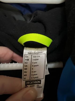 Mono de esquí Quechua para niño, talla 4 años. Ideal para mantener a los más pequeños abrigados y secos en la nieve. - Marca: Quechua. - Talla: 4 años (EUR 4, USA 4). - Fabricado en China. - Etiqueta para nombre.