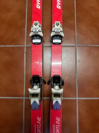 Conjunto de esquís clásicos de la marca Dynamic, modelo Sportline, en color rojo. - Esquís de color rojo con detalles gráficos. - Fijaciones de esquí incluidas.
