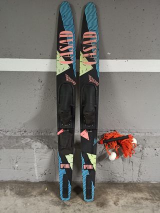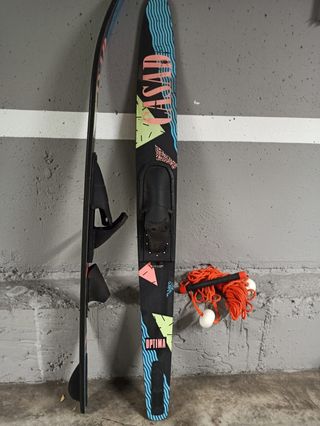 Se venden esquís acuáticos CASAD OPTIMA con un diseño llamativo y colorido. - Incluye cuerda de arrastre con flotadores.