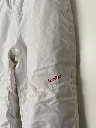 Pantalón esquí niña. Decathlon. WedZe. Talla 9 años. Color blanco. Cintura elástica. Forro de guata en gris. NOTA: Tiene unas leves marcas marrones en los bajos de los pantalones, prácticamente inapreciables