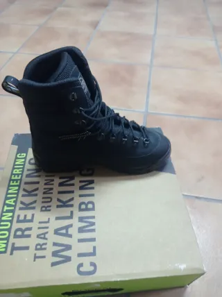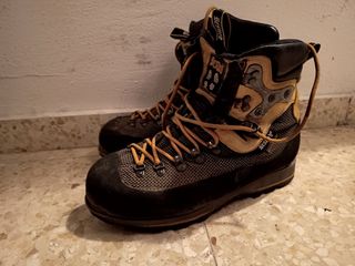 Botas de montaña Alpine Lite K en talla 44. Diseñadas para ofrecer rigidez y soporte en terrenos difíciles. Válidas para usar con cualquier tipo de crampón. Las compré ya bastante usadas de 2ª mano, y las vendo porque me están pequeñas. Están tal como se ven en las fotos. Venian con dos desperfectos en las punteras: uno es una fisura en la goma, sellada (no le entra nada de agua) y otro es uno de los resasltes para los crampones automáticos (por los que recomiendo usarlos con semi-automáticos o correas, auqnue a mí me han ido bien con automáticos). - Suela Vibram. - Diseño robusto.