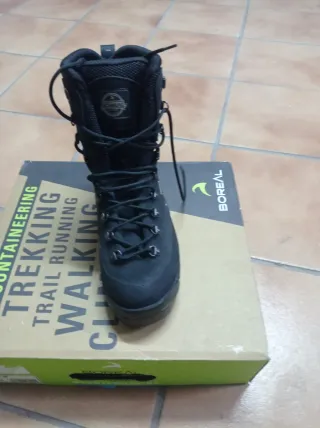 Botas de montaña de la marca Boreal, ideales para senderismo y trekking. - Color negro. - Cierre con cordones. - Caña alta para mayor sujeción. - Suela de goma. - Material exterior de ante.