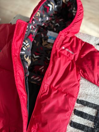 Mono de nieve Columbia de color rojo, ideal para mantener a los más pequeños abrigados en invierno. Cuenta con un diseño acolchado y capucha. Sin uso, le quité la etiqueta pensando que lo iba a usar y finalmente le queda pequeño.