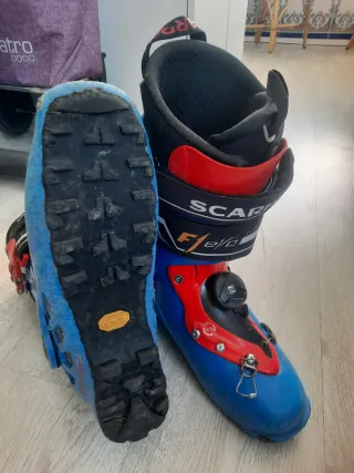 Botas de esquí de travesía Scarpa F1. - Talla 27,5 (42) - Cierre con sistema Boa. - Suela de goma, gastada en la puntera. - Diseño ligero y técnico. - Usadas pero plenamente funcionales - Botines en buen estado