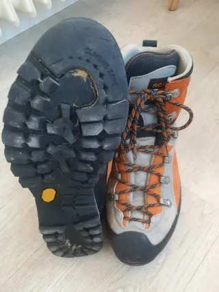Botas de montaña Scarpa Triolet en color naranja y gris. Talla 41 Perfectas para senderismo y actividades al aire libre.
