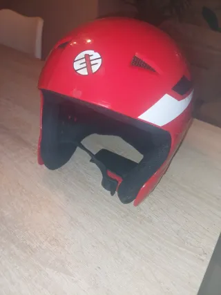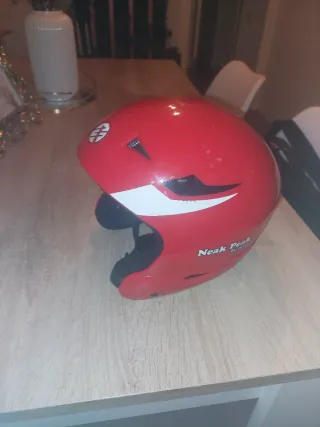 Casco de esquí para niños de la marca Neak Peak. Diseño en color rojo con detalles blancos y negros. - Talla ajustable. - Interior acolchado para mayor comodidad. - Correa de sujeción. - Ventilación.