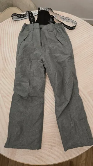 Pantalón de nieve para niño de la marca Active Touch (Aldi), talla 134/140. Como nuevo - Color gris, con tirantes desmontables con cremallera. - Impermeable. - Faldones para evitar entrada de nieve, con cierre de velcro y cremallera. - Bolsillos laterales con cremallera.