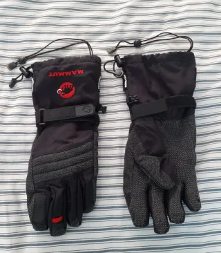 Guantes Mammut con membrana Gore-Tex impermeable y transpirable, cordura y kevkar. En perfecto estado, muy poco usados. Protección acolchada en los nudillos. Perfectos para ponerse debajo unos guantes de forro polar si hace frío. Marca talla 7 pero sería una L. Ancho de la palma 12 cms. Alpinismo, escalada en hielo, ski, Petzl, Grivel, Black Diamond, Salewa...