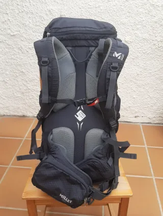 Mochila Millet Prima de 36 litros. Espalda súper ventilada FreeFlex. Tejido Robic High Tenacity Nylon. Apertura superior e inferior (separable con cremallera). Correas de compresión. Cinturón lumbar anatómico con dos bolsillos (uno extraíble con mosquetón). Compatible con sistema H2O. 2 porta bastones o piolets. Bolsillos laterales de malla. Cinturón pectoral regulable en altura. Bolsillo frontal y 2 más en la seta. Cinta de compresión bajo la seta para llevar cuerda... Funda de lluvia no incluida (perdida). En perfecto estado, apenas usada (tiene unas marcas leves en la espalda, últimas 2 fotos). Mammut, Salewa, Deuter...