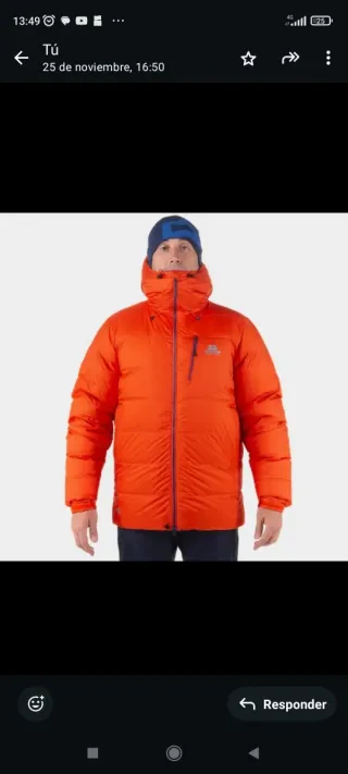 Parka de plumas Mountain Equipment K7 en color naranja. - Diseño acolchado. - Capucha integrada. - Cremallera frontal. Talla M