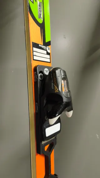 Esquís Rossignol World Cup de 165 cm. -Usados y con roces. - Diseño en naranja y verde. - Fijaciones incluidas.