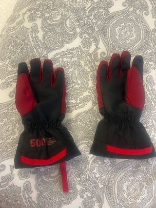 Guantes de esquí para niños de la marca Wedze, ideales para mantener las manos calientes en la nieve. - Color rojo y negro. - Puño elástico. - Diseño acolchado.