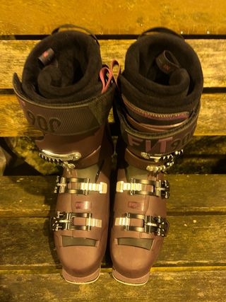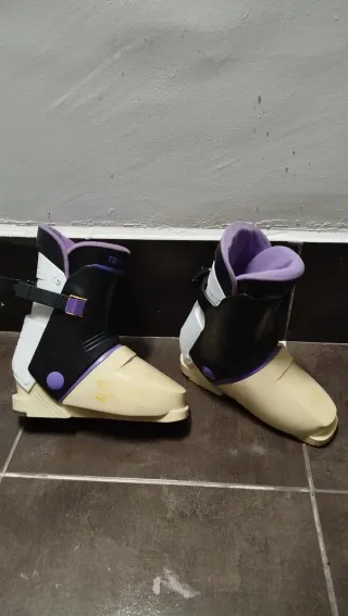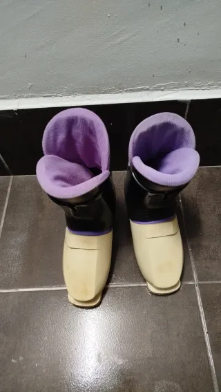 Botas de esquí de pista con interior morado. - Parte exterior de plástico duro. - Interior de tela suave. Número 38-39