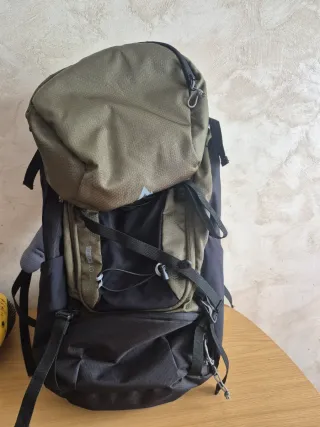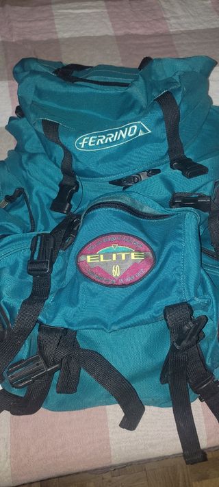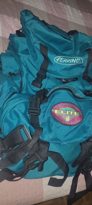 Mochila de montaña Ferrino Elite 60, en color verde azulado. Está en buen estado, aunque muestra señales normales de uso. - Capacidad: 60 litros. - Marca: Ferrino. - Color: Verde azulado. - Modelo: Elite 60.