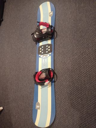 Tabla de snowboard con un diseño de rayas azules y blancas. Incluye fijaciones. - Diseño de rayas azules y blancas. - Fijaciones incluidas.