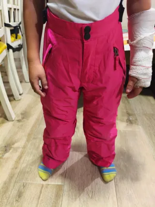 Mono de esquí de color rosa brillante, perfecto para mantener a los más pequeños abrigados y secos en la nieve. Incluye un conjunto de calcetines. - Mono de esquí con cremallera frontal. Talla 3-4años - Parte superior de forro polar. - Pantalones impermeables. - Tirantes ajustables. - Incluye 3 pares de calcetines (2 grises, 1 azul).Talla 23/26 -camiseta calentita 3-4 años -Todo 20€