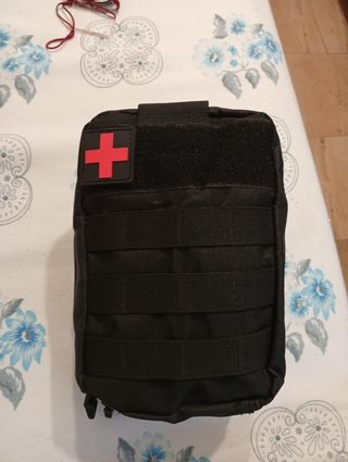 Este botiquín táctico es ideal para llevar tus suministros médicos de forma organizada y accesible. - Color negro. - Parche de cruz roja. - Diseño con sistema MOLLE.
