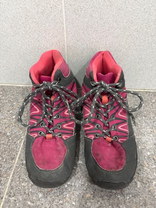 Botas de montaña de caña media, ideales para senderismo. Entrega rápida. - Color rosa con detalles en gris. - Cierre con cordones. - Suela de goma.
