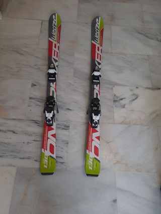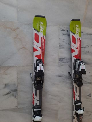 Esquís Volkl RaceTiger para jóvenes esquiadores. - Longitud de 130 cm. - Diseño en amarillo y negro. - Fijaciones rojas y negras. - Con bastones 90cms o 100cms 5€ mas