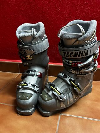 Botas de esquí Tecnica en color gris. - Cierre con hebillas. - Correa de velcro en la parte superior. - Interior forrado.