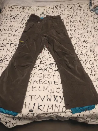 Pantalón de esquí de pana para adulto. Diseño moderno y funcional. Hombre o mujer talla S. Medidas en foto Marca quiksilver - Color marrón. - Bolsillos cargo laterales. - Cintura ajustable.