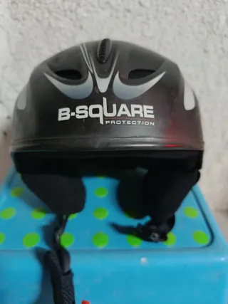 Casco de esquí de la marca Be Square. - Talla: 57-59 cm. - Diseño en color negro con detalles plateados. - Cierre de seguridad.