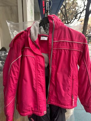 Chaqueta de esquí de color rosa vibrante, perfecta para mantener a los más pequeños abrigados y protegidos en la montaña. Diseñada con atención al detalle y materiales de calidad. - Cremallera frontal completa. - Bolsillos laterales con cremallera. - Capucha integrada con forro de felpa gris. - Puños ajustables. Talla 9años