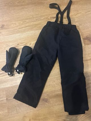 Conjunto de esquí para niñ@ de 6 a 7 años. - Pantalón de esquí negro con tirantes. - Guantes negros. - calcetines