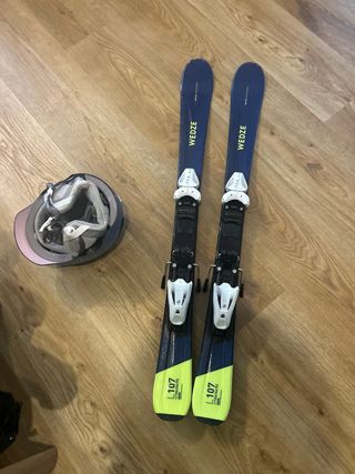 Set de esquí que incluye esquís y casco. - Esquís Wedze L107. - Casco de esquí.