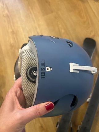 Casco de esquí marca Bern, ideal para niños de 5 a 6 años. Diseñado para proteger y ofrecer comodidad en la nieve. - Color azul claro. - Cierre de seguridad ajustable. - Diseño con visera integrada.