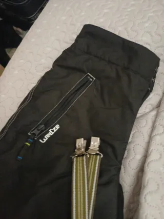 Pantalón para esquí con cintura regulable y forro polar interior y exterior impermeable. Adjunto de regalo sudadera térmica de la misma marca wedze de la tienda decathlon. Es talla 12 años pero también vale para chica con talla xs . Medidas: cintura 38cm largo 107 cm