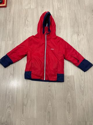 Chaqueta de esquí de la marca Wedze, ideal para actividades en la nieve. Presenta un diseño colorido y funcional. naranja de 4 anos azul larga de 5 anos azul corta de 4 anos - Color azul marino y coral. - Cremalleras de contraste en color rojo y amarillo. - Capucha integrada.