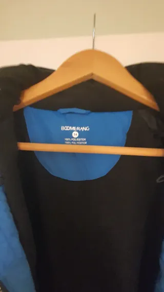 Chaqueta de esquí de la marca Boomerang en color azul talla 14A. Diseñada para actividades en la nieve. - Diseño con detalles en rojo y blanco. - Cremallera frontal. - Capucha integrada. - Bolsillos con cremallera, en la manga e interior. -Interior cálido con forro polar y ajuste de cintura.