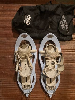 - Raquetas de nieve TSL Evasion D56 - Aptas para todo tipo de botas. - Ajuste por correas con cierres rápidos. - Ajuste del talón, suelto/ fijo/ alzas. - Para pesos hasta 80 kilos - Para talla de pie de 36 a 47 - Con bolsa de transporte. - Muy buen estado.