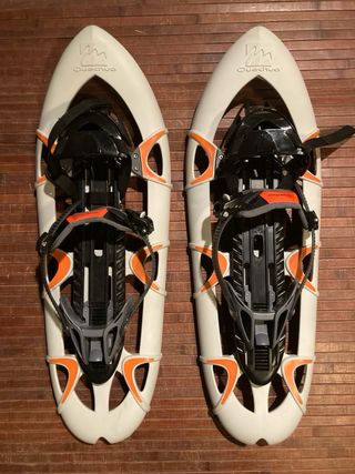 - Raquetas de nieve Quechua. - Aptas para todo tipo de bota. - Ajuste por correas. - Para tallas de pie de 37 a 46 - Para pesos hasta 120 kilos. - Con bolsa de transporte. - Nuevas a estrenar.