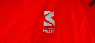 Chaqueta de plumas (plumón natural) de la marca Millet. Es una prenda de abrigo para frio extremo. Utilizada durante 3 semanas en ascensos a 6000m, en 2011. Coste original 450€. - Color rojo vibrante. - talla L - Paneles en color negro en hombros y mangas. - Cierre frontal con cremallera. - Bolsillos laterales con cremallera. - tiene un pequeño agujero cerca del bolsillo derecho.