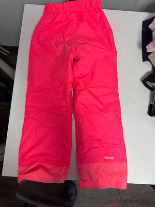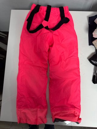 Conjunto de chaqueta y pantalón de esquí para niños, talla 152cm. Ideal para disfrutar de la nieve con comodidad y protección. - Chaqueta de color rosa vibrante con detalles en azul. - Pantalón a juego. - Cremalleras de fácil agarre.