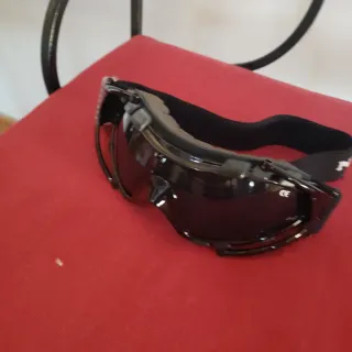 Gafas de esquí de color negro, diseñadas para adultos.Tienen muy poco uso. Cuentan con una correa ajustable para mayor comodidad. - Lentes oscuras. - Marco negro brillante. - Correa elástica negra.