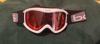 Gafas de esquí o snowboard de la marca Bollé. El marco es de color blanco y la cinta es negra con detalles grises. - Lente con acabado espejo. - No se empañan - Cinta trasera en perfecto estado - Sin rallones en la lente - Diseño ergonómico.
