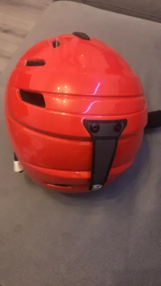 Casco de esquí de color rojo brillante, diseñado para niños. Cuenta con un sistema de ajuste para mayor comodidad. - Diseño con ventilación. - Correas ajustables.